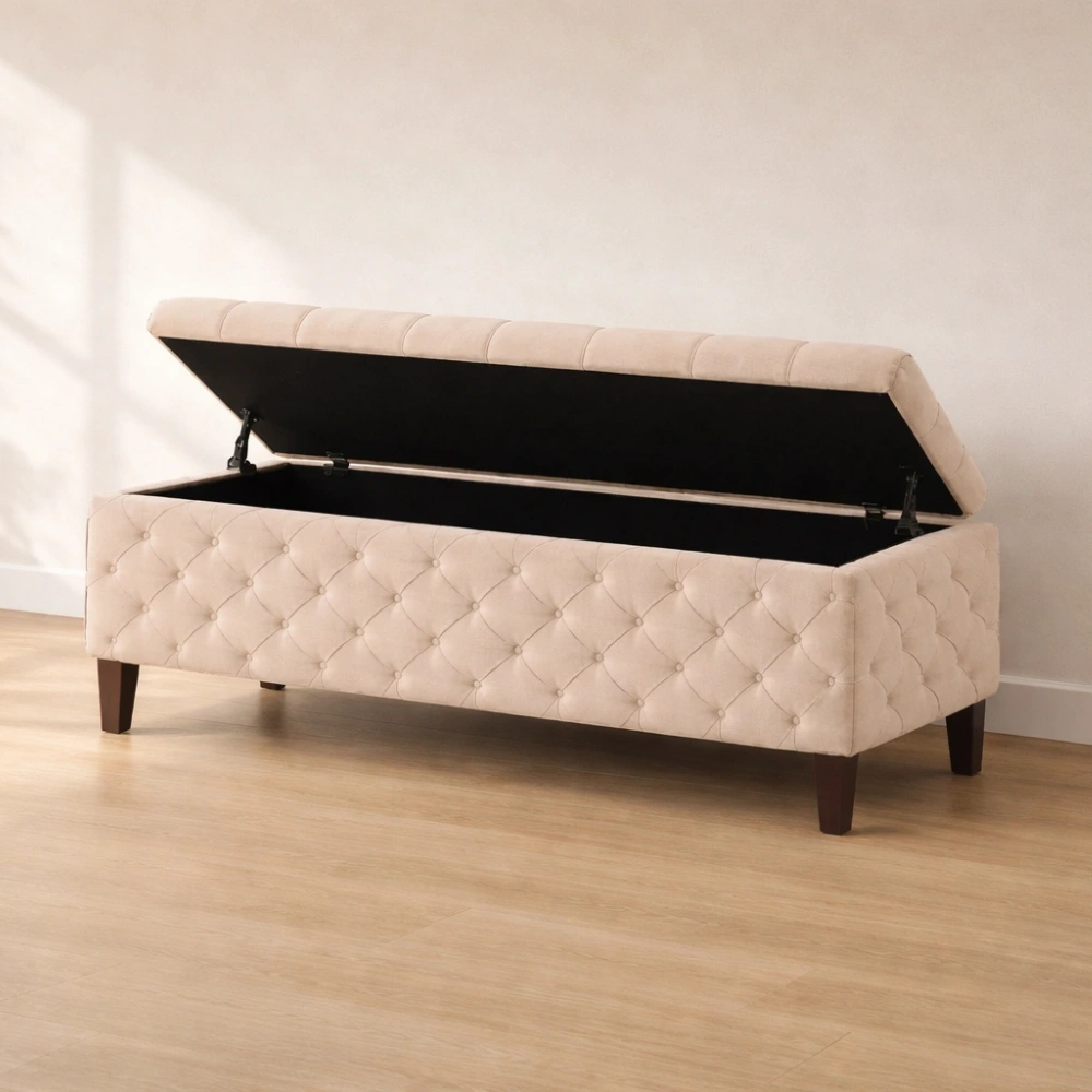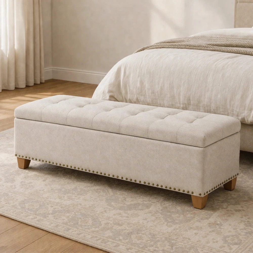 Banc de rangement coffre en tissu beige