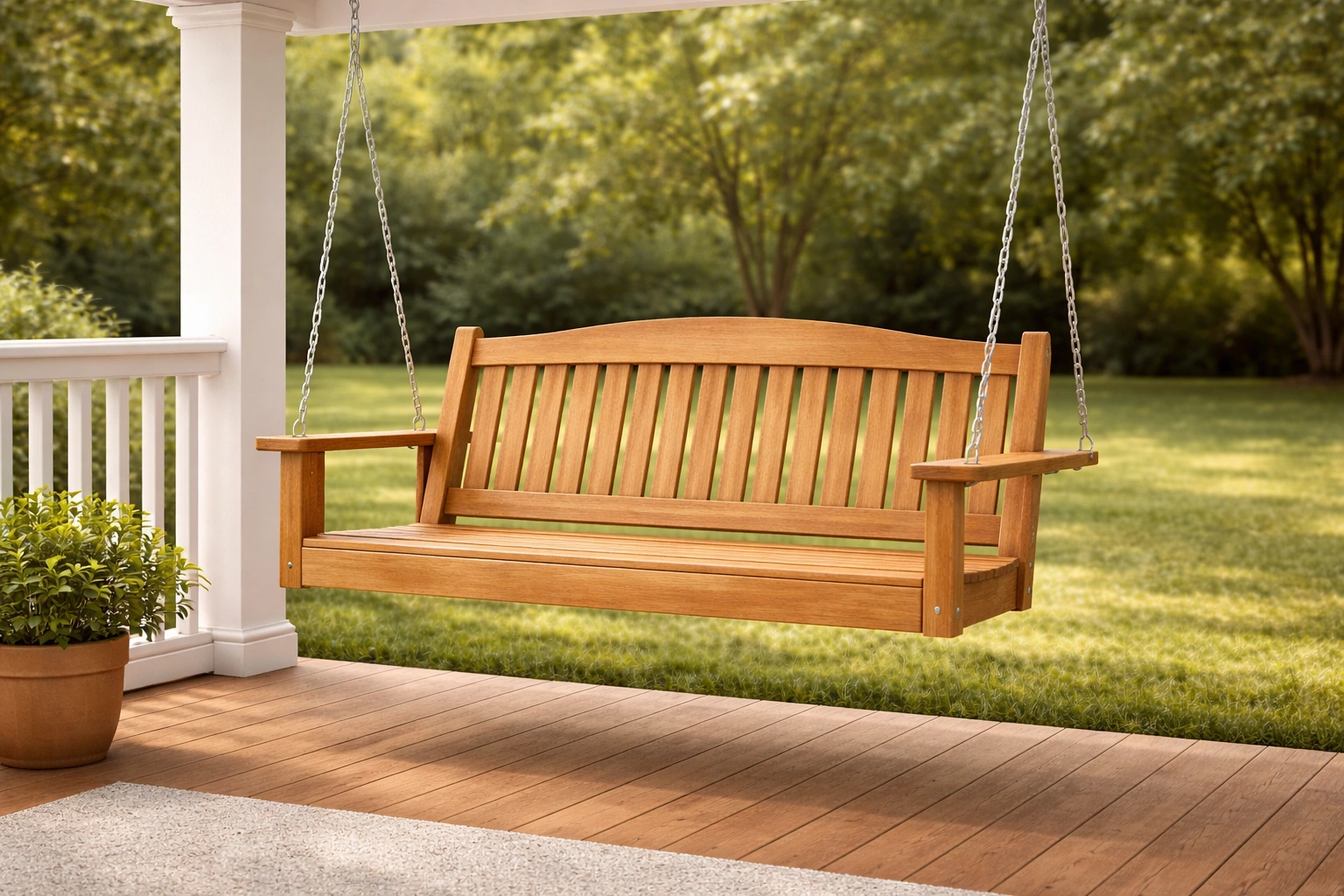 Balancelle de porche en bois dur avec chaînes